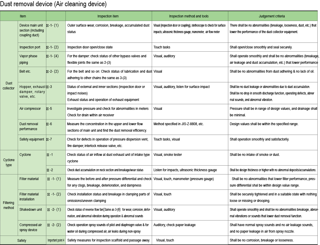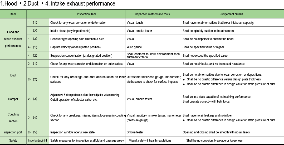 Exhaust ventilation (dust removal) device periodic self-inspection guidelines