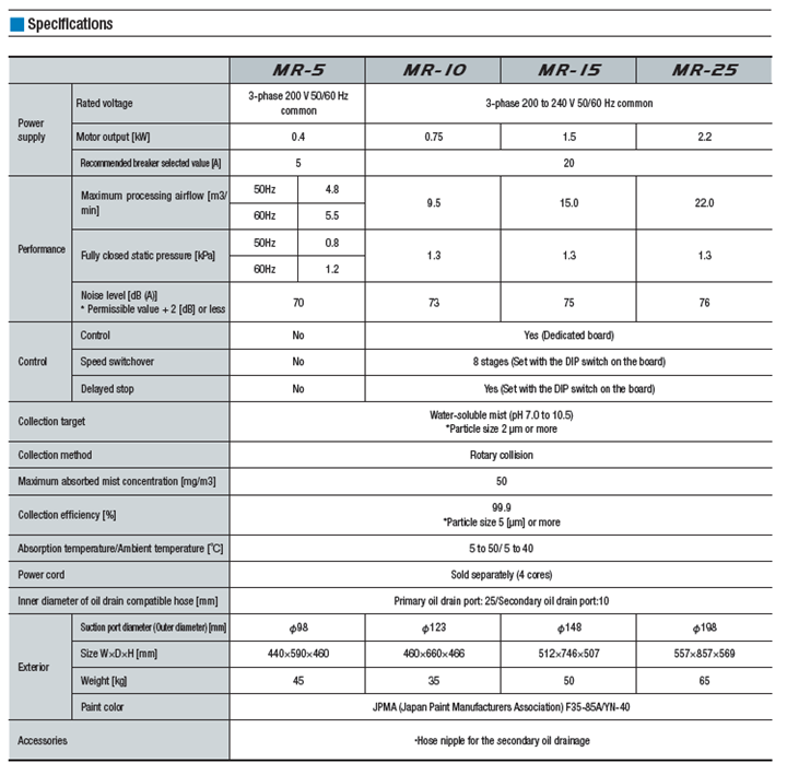 The new MR Series Filterless Mist Collector is here. A Positive pressure self-draining system, new inverter control and increased collection efficiency of 99.9% make the MR series the new standard for the industrial filterless mist collection market.